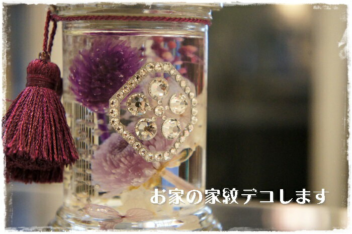 そして、そのみずみずしい状態はお手入れが不要で、1年以上持続します!!当店のハーバリウムはスワロフスキーデコレーションを瓶に装飾しているので、周りとかぶることがないオリジナルのハーバリウムです!!ご自宅用はもちろん、色んなシーンで喜んでいただけます!!■デコレーションしたい家紋の名前をお待ちがえないように備考欄へご記入お願いします。