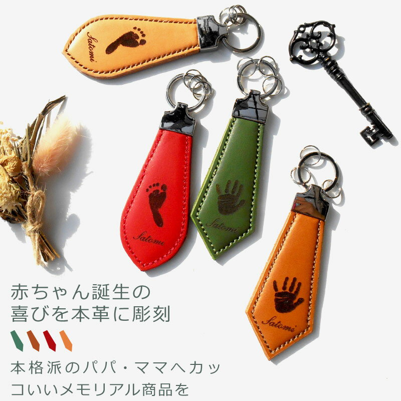 出産祝い 内祝い メモリアル 誕生祝い 赤ちゃん 手形 足形 革 キーホルダー「Tie Key Ring」 カッコよさを追求した赤ちゃん手形・足形キーホルダー 1